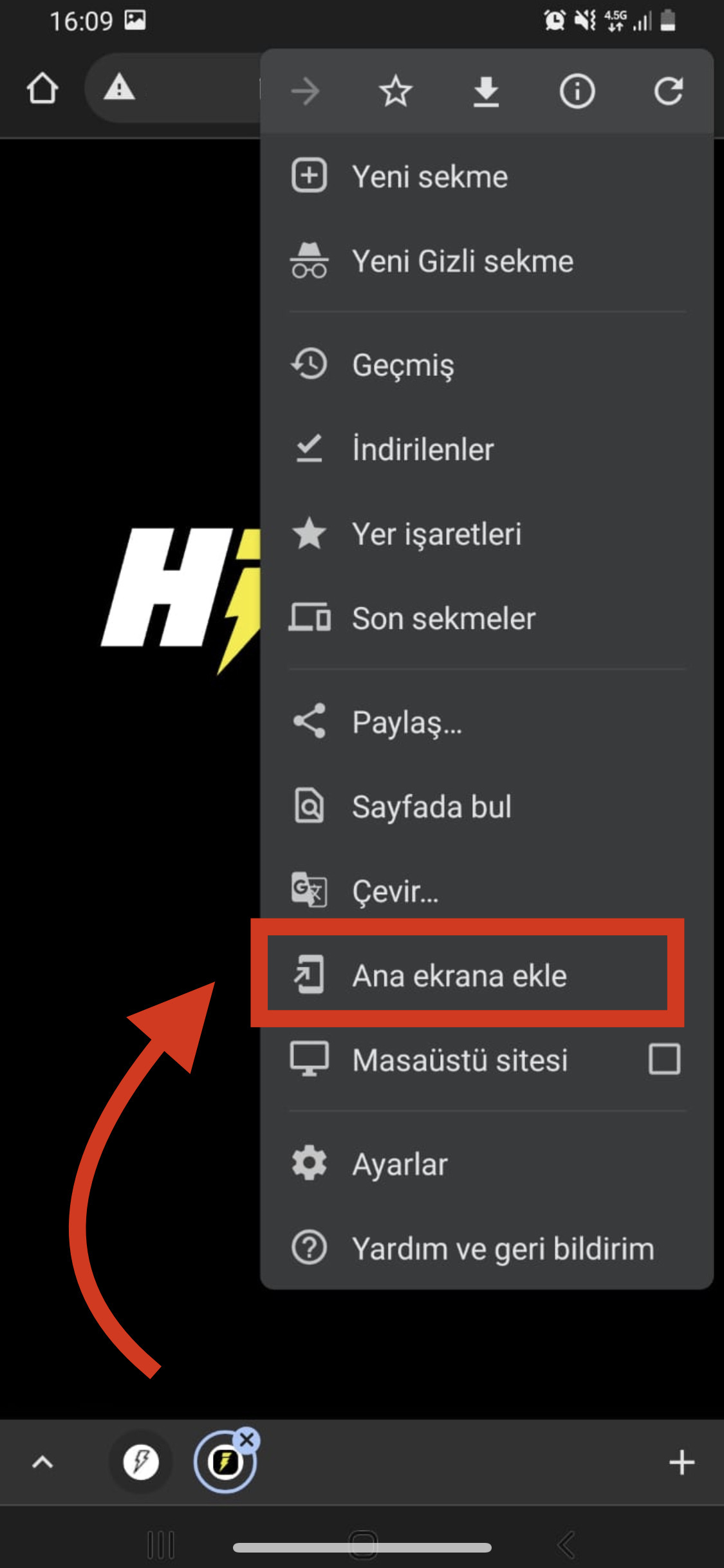 Ana Ekrana Ekle Tuşuna basın.