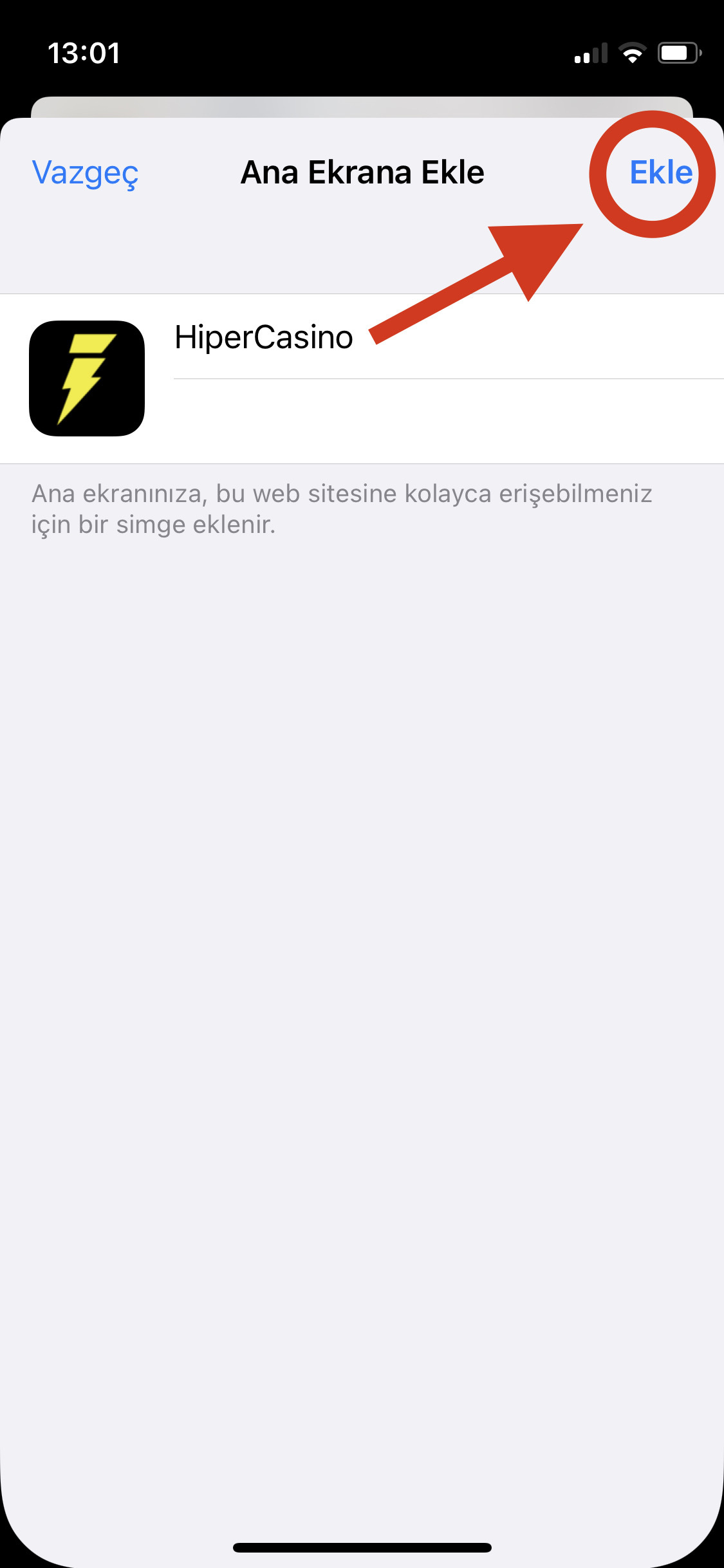 Gelen ekranda bulunan "Ekle" butonuna basın.
